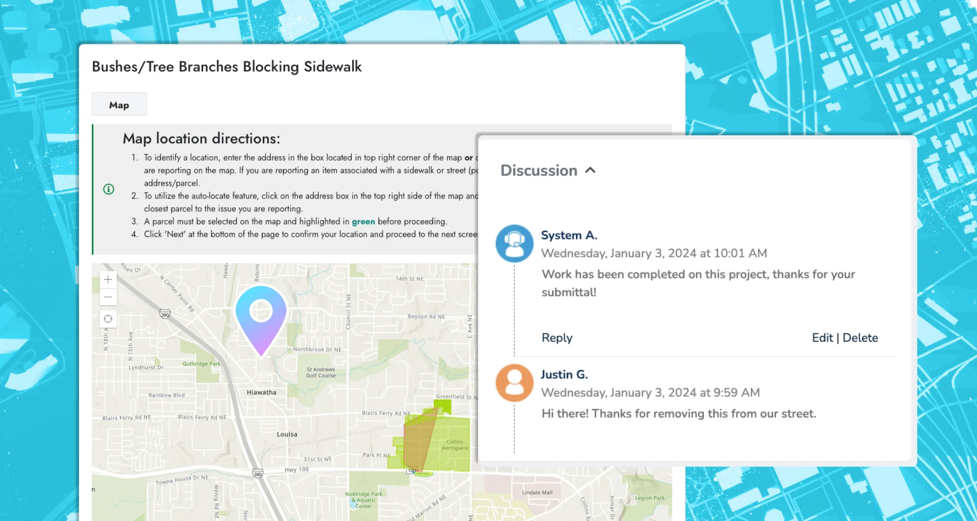 From internal crews to outside contractors and even residents, set up automatic alerts and updates so everyone knows what’s happening, when, and where, no chasing down answers.